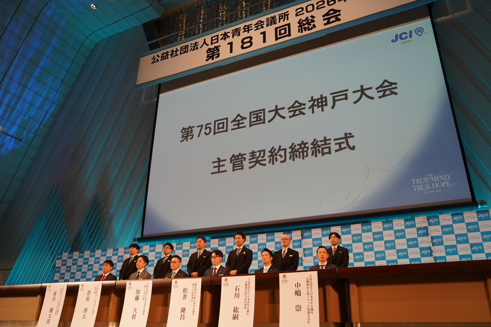 私たち一般社団法人徳島青年会議所は、2年後第77回全国大会の開催を控えており、1月23日に行われた全国大会運営会議の全体会議、ならびに24日に執り行われた第75回全国大会神戸大会主管契約締結式へ、オブザーブ参加させていただきました。